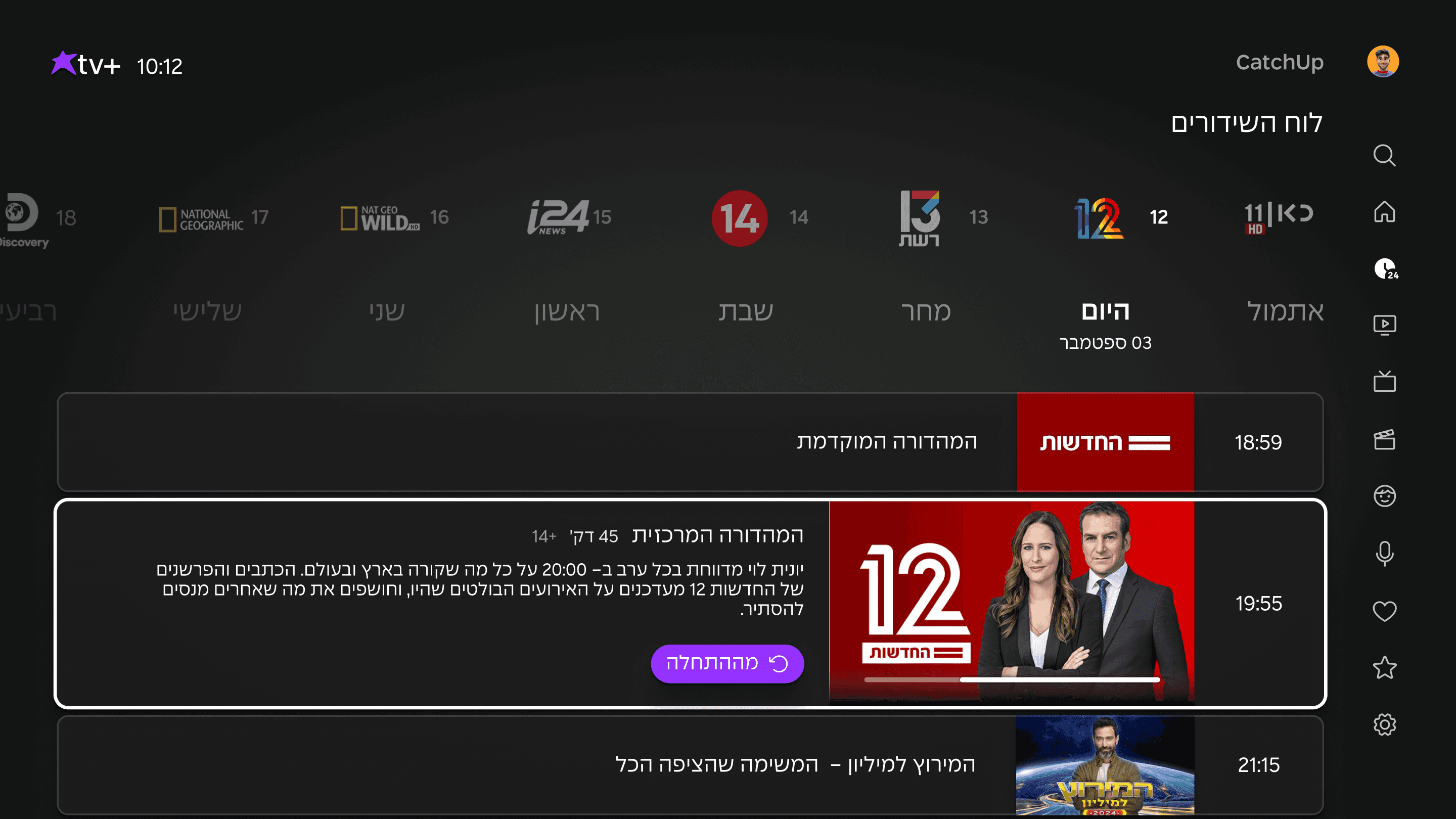 The Catch-Up screen and Info Bar are designed for quick, comfortable access to last-week broadcasts, easy channel surfing, and a clear view of the upcoming weekly schedule- making it simple for users to jump into recent content or plan what to watch next.